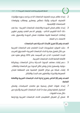 %u0627%u0644%u062e%u0637%u0629 %u0627%u0627%u0644%u0633%u0631%u062a%u0627%u062a%u064a%u062c%u064a%u0629 %u0627%u0644%u062a%u062d%u0627%u062f %u0627%u0644%u062c%u0627%u0645%u0639%u0627%u062a %u0627%u0644%u0639%u0631%u0628%u064a%u0629 2019 -2030222 .%u0625%u0639%u062f%u0627%u062f %u0646%u0638%u0627%u0645 %u0639%u0631%u064a%u0628 %u0644%u062a%u0635%u0646%u064a%u0641 %u0627%u0644%u062c%u0627%u0645%u0639%u0627%u062a %u0627%u0644%u0630%u064a %u064a%u0631%u0627%u0639%u064a %u0628%u062f%u0648%u0631%u0647 %u0645%u0624%u0631%u0634%u0627%u062a %u064b %u0627%u0644%u062a%u0635%u0646%u064a%u0641 %u0627%u0644%u062f%u0648%u064a%u0644 %u0648%u0623%u064a%u0636%u0627 %u062e%u0635%u0627%u0626%u0635 %u0648%u0645%u0639%u0627%u064a%u0631%u064a %u0648%u0645%u0637%u0627%u0644%u0628 %u0648%u062a%u0648%u0642%u0639%u0627%u062a %u0627%u0645%u0644%u062c%u062a%u0645%u0639%u0627%u062a %u0627%u0625%u0644%u0642%u0644%u064a%u0645%u064a%u0629.3 .%u0625%u0639%u062f%u0627%u062f %u0646%u0638%u0627%u0645 %u0636%u0627%u0645%u0646 %u0627%u0644%u062c%u0648%u062f%u0629 %u0648%u0627%u0627%u0644%u0639%u062a%u0627%u0645%u062f %u0644%u0644%u062c%u0627%u0645%u0639%u0627%u062a %u0627%u0644%u0639%u0631%u0628%u064a%u0629 - %u0645%u0628%u0627 %u064a%u0641 %u0630%u0644%u0643 %u0623%u062f%u0644%u0629 %u0627%u0644%u062a%u0642%u064a%u064a%u0645 %u0627%u0644%u0630%u0627%u064a%u062a - %u0648%u062a%u0648%u0641%u0631%u064a %u0627%u0644%u062f%u0639%u0645 %u0627%u0644%u0641%u0646%u064a %u0648%u0641%u0631%u0635 %u062a%u0637%u0648%u064a%u0631 %u0625%u0645%u0643%u0627%u0646%u0627%u062a %u0627%u0644%u062c%u0627%u0645%u0639%u0629 %u0644%u062a%u0644%u0628%u064a%u0629 %u0645%u062a%u0637%u0644%u0628%u0627%u062a %u0636%u0627%u0645%u0646 %u0627%u0644%u062c%u0648%u062f%u0629 %u0648%u0627%u0644%u062d%u0635%u0648%u0644 %u0639%u0649%u0644 %u0627%u0627%u0644%u0639%u062a%u0627%u0645%u062f %u0630%u064a %u0627%u0644%u0635%u0644%u0629.%u0627%u0644%u0647%u062f%u0641 %u0631%u0642%u0645 )5 )%u062a%u0639%u0632%u064a%u0632 %u0627%u0623%u0644%u0628%u062d%u0627%u062b %u0627%u0644%u062d%u062f%u064a%u062b%u0629 %u064a%u0641 %u0627%u0644%u062c%u0627%u0645%u0639%u0627%u062a:4 .%u062d%u0634%u062f %u0627%u0645%u0644%u0648%u0627%u0631%u062f %u0645%u0644%u0631%u0634%u0648%u0639%u0627%u062a %u0627%u0644%u0628%u062d%u062b %u0627%u0644%u0639%u0644%u0645%u064a %u064a%u0641 %u0627%u0644%u062c%u0627%u0645%u0639%u0627%u062a %u0627%u0644%u0639%u0631%u0628%u064a%u0629 %u0645%u0646 %u062e%u0627%u0644%u0644 %u062a%u0641%u0639%u064a%u0644 %u0645%u0628%u0627%u062f%u0631%u0629 %u0627%u062a%u062d%u0627%u062f %u0627%u0644%u062c%u0627%u0645%u0639%u0627%u062a %u0627%u0644%u0639%u0631%u0628%u064a%u0629 %u00bb%u0627%u0644%u0635%u0646%u062f%u0648%u0642 %u0627%u0644%u0639%u0631%u064a%u0628 %u0644%u0644%u0628%u062d%u062b %u0627%u0644%u0639%u0644%u0645%u064a%u00ab %u0627%u0644%u0630%u064a %u062a%u0645 %u062a%u0623%u0633%u064a%u0633%u0647 %u0639%u0627%u0645 2012 %u0648%u064a%u0642%u0639 %u0645%u0642%u0631%u0647 %u064a%u0641 %u0627%u0623%u0644%u0645%u0627%u0646%u0629 %u0627%u0644%u0639%u0627%u0645%u0629 %u0627%u0644%u062a%u062d%u0627%u062f %u0627%u0644%u062c%u0627%u0645%u0639%u0627%u062a %u0627%u0644%u0639%u0631%u0628%u064a%u0629.5 .%u062f%u0639%u0645 %u0625%u0646%u0634%u0627%u0621 %u0645%u0639%u0627%u0647%u062f %u0627%u0644%u0628%u062d%u0648%u062b %u0627%u0644%u062d%u062f%u064a%u062b%u0629 %u0628%u062f%u0627%u062e%u0644 %u0627%u0644%u062c%u0627%u0645%u0639%u0627%u062a%u060c %u0648%u0628%u0631%u0634%u0627%u0643%u0629 %u062f%u0648%u0644%u064a%u0629%u060c %u0648%u062a%u0633%u0647%u064a%u0644 %u062a%u0628%u0627%u062f%u0644 %u0648%u0646%u0631%u0634 %u0646%u062a%u0627%u0626%u062c %u0627%u0644%u0628%u062d%u0648%u062b %u0628%u0646%u064a %u0627%u0644%u062c%u0627%u0645%u0639%u0627%u062a %u0648%u0627%u0644%u0637%u0627%u0644%u0628.6 .%u0625%u0646%u0634%u0627%u0621 %u0634%u0628%u0643%u0629 %u0645%u0646 %u0645%u0631%u0627%u0643%u0632 %u0627%u0627%u0644%u0645%u062a%u064a%u0627%u0632 %u0627%u0644%u0639%u0644%u0645%u064a%u0629 %u064a%u0641 %u0627%u0645%u0644%u0646%u0637%u0642%u0629 %u0644%u062a%u0628%u0627%u062f%u0644 %u0627%u0645%u0644%u0639%u0631%u0641%u0629 %u0648%u0627%u0644%u062e%u0631%u0628%u0627%u062a %u0648%u0627%u0644%u062a%u0639%u0627%u0648%u0646 %u064a%u0641 %u0627%u0644%u0628%u062d%u062b %u0648%u0627%u0627%u0644%u0628%u062a%u0643%u0627%u0631.%u0627%u0644%u0647%u062f%u0641 %u0631%u0642%u0645 )6 )%u0627%u0644%u062e%u0627%u0635 %u0628%u062a%u0639%u0632%u064a%u0632 %u0625%u062f%u0627%u0631%u0629 %u0627%u062a%u062d%u0627%u062f %u0627%u0644%u062c%u0627%u0645%u0639%u0627%u062a %u0627%u0644%u0639%u0631%u0628%u064a%u0629 %u0648%u0627%u0623%u0644%u0645%u0627%u0646%u0629 %u0627%u0644%u0639%u0627%u0645%u0629:7 .%u0625%u0639%u062f%u0627%u062f %u0642%u0646%u0648%u0627%u062a %u0627%u062a%u0635%u0627%u0644 %u0631%u0633%u0645%u064a%u0629 %u0645%u0639 %u0635%u0627%u0646%u0639%u064a %u0627%u0644%u0633%u064a%u0627%u0633%u0627%u062a%u060c %u0648%u0636%u0627%u0645%u0646 %u0627%u0633%u062a%u0645%u0631%u0627%u0631 %u062a%u063a%u0637%u064a%u0629 %u0648%u0646%u0631%u0634 %u0645%u0628%u0627%u062f%u0626 %u0627%u062a%u062d%u0627%u062f %u0627%u0644%u062c%u0627%u0645%u0639%u0627%u062a %u0627%u0644%u0639%u0631%u0628%u064a%u0629 %u0648%u0623%u062e%u0628%u0627%u0631%u0647 %u0645%u0646 %u062e%u0627%u0644%u0644 %u0647%u0630%u0647 %u0627%u0644%u0642%u0646%u0648%u0627%u062a.8 .%u0636%u0627%u0645%u0646 %u0623%u0646 %u0627%u0644%u0647%u064a%u0643%u0644 %u0627%u0644%u062a%u0646%u0638%u064a%u0645%u064a %u0627%u0644%u062a%u062d%u0627%u062f %u0627%u0644%u062c%u0627%u0645%u0639%u0627%u062a %u0627%u0644%u0639%u0631%u0628%u064a%u0629 %u0648%u0625%u062f%u0627%u0631%u062a%u0647%u0627