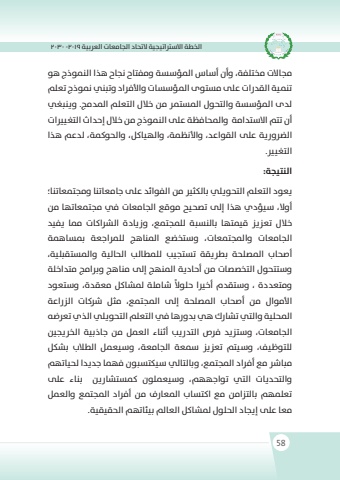 %u0627%u0644%u062e%u0637%u0629 %u0627%u0627%u0644%u0633%u0631%u062a%u0627%u062a%u064a%u062c%u064a%u0629 %u0627%u0644%u062a%u062d%u0627%u062f %u0627%u0644%u062c%u0627%u0645%u0639%u0627%u062a %u0627%u0644%u0639%u0631%u0628%u064a%u0629 2019 -203058%u0645%u062c%u0627%u0627%u0644%u062a %u0645%u062e%u062a%u0644%u0641%u0629%u060c %u0648%u0623%u0646 %u0623%u0633%u0627%u0633 %u0627%u0645%u0644%u0624%u0633%u0633%u0629 %u0648%u0645%u0641%u062a%u0627%u062d %u0646%u062c%u0627%u062d %u0647%u0630%u0627 %u0627%u0644%u0646%u0645%u0648%u0630%u062c %u0647%u0648 %u062a%u0646%u0645%u064a%u0629 %u0627%u0644%u0642%u062f%u0631%u0627%u062a %u0639%u0649%u0644 %u0645%u0633%u062a%u0648%u0649 %u0627%u0645%u0644%u0624%u0633%u0633%u0627%u062a %u0648%u0627%u0623%u0644%u0641%u0631%u0627%u062f %u0648%u062a%u0628%u0646%u064a %u0645%u0646%u0648%u0630%u062c %u062a%u0639%u0644%u0645 %u0644%u062f%u0649 %u0627%u0645%u0644%u0624%u0633%u0633%u0629 %u0648%u0627%u0644%u062a%u062d%u0648%u0644 %u0627%u0645%u0644%u0633%u062a%u0645%u0631 %u0645%u0646 %u062e%u0627%u0644%u0644 %u0627%u0644%u062a%u0639%u0644%u0645 %u0627%u0645%u0644%u062f%u0645%u062c. %u0648%u064a%u0646%u0628%u063a%u064a %u0623%u0646 %u062a%u062a%u0645 %u0627%u0627%u0644%u0633%u062a%u062f%u0627%u0645%u0629 %u0648%u0627%u0645%u0644%u062d%u0627%u0641%u0638%u0629 %u0639%u0649%u0644 %u0627%u0644%u0646%u0645%u0648%u0630%u062c %u0645%u0646 %u062e%u0627%u0644%u0644 %u0625%u062d%u062f%u0627%u062b %u0627%u0644%u062a%u063a%u064a%u0631%u064a%u0627%u062a %u0627%u0644%u0631%u0636%u0648%u0631%u064a%u0629 %u0639%u0649%u0644 %u0627%u0644%u0642%u0648%u0627%u0639%u062f%u060c %u0648%u0627%u0623%u0644%u0646%u0638%u0645%u0629%u060c %u0648%u0627%u0644%u0647%u064a%u0627%u0643%u0644%u060c %u0648%u0627%u0644%u062d%u0648%u0643%u0645%u0629%u060c %u0644%u062f%u0639%u0645 %u0647%u0630%u0627 %u0627%u0644%u062a%u063a%u064a%u0631%u064a. %u0627%u0644%u0646%u062a%u064a%u062c%u0629:%u064a%u0639%u0648%u062f %u0627%u0644%u062a%u0639%u0644%u0645 %u0627%u0644%u062a%u062d%u0648%u064a%u064a%u0644 %u0628%u0627%u0644%u0643%u062b%u0631%u064a %u0645%u0646 %u0627%u0644%u0641%u0648%u0627%u0626%u062f %u0639%u0649%u0644 %u062c%u0627%u0645%u0639%u0627%u062a%u0646%u0627 %u0648%u0645%u062c%u062a%u0645%u0639%u0627%u062a%u0646%u0627%u061b %u0623%u0648%u0627%u0644%u060c %u0633%u064a%u0624%u062f%u064a %u0647%u0630%u0627 %u0625%u0649%u0644 %u062a%u0635%u062d%u064a%u062d %u0645%u0648%u0642%u0639 %u0627%u0644%u062c%u0627%u0645%u0639%u0627%u062a %u064a%u0641 %u0645%u062c%u062a%u0645%u0639%u0627%u062a%u0647%u0627 %u0645%u0646 %u062e%u0627%u0644%u0644 %u062a%u0639%u0632%u064a%u0632 %u0642%u064a%u0645%u062a%u0647%u0627 %u0628%u0627%u0644%u0646%u0633%u0628%u0629 %u0644%u0644%u0645%u062c%u062a%u0645%u0639%u060c %u0648%u0632%u064a%u0627%u062f%u0629 %u0627%u0644%u0631%u0634%u0627%u0643%u0627%u062a %u0645%u0627%u0645 %u064a%u0641%u064a%u062f %u0627%u0644%u062c%u0627%u0645%u0639%u0627%u062a %u0648%u0627%u0645%u0644%u062c%u062a%u0645%u0639%u0627%u062a%u060c %u0648%u0633%u062a%u062e%u0636%u0639 %u0627%u0645%u0644%u0646%u0627%u0647%u062c %u0644%u0644%u0645%u0631%u0627%u062c%u0639%u0629 %u0645%u0628%u0633%u0627%u0647%u0645%u0629 %u0623%u0635%u062d%u0627%u0628 %u0627%u0645%u0644%u0635%u0644%u062d%u0629 %u0628%u0637%u0631%u064a%u0642%u0629 %u062a%u0633%u062a%u062c%u064a%u0628 %u0644%u0644%u0645%u0637%u0627%u0644%u0628 %u0627%u0644%u062d%u0627%u0644%u064a%u0629 %u0648%u0627%u0645%u0644%u0633%u062a%u0642%u0628%u0644%u064a%u0629%u060c %u0648%u0633%u062a%u062a%u062d%u0648%u0644 %u0627%u0644%u062a%u062e%u0635%u0635%u0627%u062a %u0645%u0646 %u0623%u062d%u0627%u062f%u064a%u0629 %u0627%u0645%u0644%u0646%u0647%u062c %u0625%u0649%u0644 %u0645%u0646%u0627%u0647%u062c %u0648%u0628%u0631%u0627%u0645%u062c %u0645%u062a%u062f%u0627%u062e%u0644%u0629 %u0648%u0645%u062a%u0639%u062f%u062f%u0629 %u060c %u0648%u0633%u062a%u0642%u062f%u0645 %u0623%u062e%u0631%u064a%u0627 %u062d%u0644%u0648%u0627%u0644%u064b %u0634%u0627%u0645%u0644%u0629 %u0645%u0644%u0634%u0627%u0643%u0644 %u0645%u0639%u0642%u062f%u0629%u060c %u0648%u0633%u062a%u0639%u0648%u062f %u0627%u0623%u0644%u0645%u0648%u0627%u0644 %u0645%u0646 %u0623%u0635%u062d%u0627%u0628 %u0627%u0645%u0644%u0635%u0644%u062d%u0629 %u0625%u0649%u0644 %u0627%u0645%u0644%u062c%u062a%u0645%u0639%u060c %u0645%u062b%u0644 %u0631%u0634%u0643%u0627%u062a %u0627%u0644%u0632%u0631%u0627%u0639%u0629 %u0627%u0645%u0644%u062d%u0644%u064a%u0629 %u0648%u0627%u0644%u062a%u064a %u062a%u0634%u0627%u0631%u0643 %u0647%u064a %u0628%u062f%u0648%u0631%u0647%u0627 %u064a%u0641 %u0627%u0644%u062a%u0639%u0644%u0645 %u0627%u0644%u062a%u062d%u0648%u064a%u064a%u0644 %u0627%u0644%u0630%u064a %u062a%u0639%u0631%u0636%u0647 %u0627%u0644%u062c%u0627%u0645%u0639%u0627%u062a%u060c %u0648%u0633%u062a%u0632%u064a%u062f %u0641%u0631%u0635 %u0627%u0644%u062a%u062f%u0631%u064a%u0628 %u0623%u062b%u0646%u0627%u0621 %u0627%u0644%u0639%u0645%u0644 %u0645%u0646 %u062c%u0627%u0630%u0628%u064a%u0629 %u0627%u0644%u062e%u0631%u064a%u062c%u0646%u064a %u0644%u0644%u062a%u0648%u0638%u064a%u0641%u060c %u0648%u0633%u064a%u062a%u0645 %u062a%u0639%u0632%u064a%u0632 %u0633%u0645%u0639%u0629 %u0627%u0644%u062c%u0627%u0645%u0639%u0629%u060c %u0648%u0633%u064a%u0639%u0645%u0644 %u0627%u0644%u0637%u0627%u0644%u0628 %u0628%u0634%u0643%u0644 %u0645%u0628%u0627%u0631%u0634 %u0645%u0639 %u0623%u0641%u0631%u0627%u062f %u0627%u0645%u0644%u062c%u062a%u0645%u0639%u060c %u0648%u0628%u0627%u0644%u062a%u0627%u064a%u0644 %u0633%u064a%u0643%u062a%u0633%u0628%u0648%u0646 %u0641%u0647%u0627%u0645 %u062c%u062f%u064a%u062f%u0627 %u0644%u062d%u064a%u0627%u062a%u0647%u0645 %u0648%u0627%u0644%u062a%u062d%u062f%u064a%u0627%u062a %u0627%u0644%u062a%u064a %u062a%u0648%u0627%u062c%u0647%u0647%u0645%u060c %u0648%u0633%u064a%u0639%u0645%u0644%u0648%u0646 %u0643%u0645%u0633%u062a%u0634%u0627%u0631%u064a%u0646 %u0628%u0646%u0627%u0621 %u0639%u0649%u0644 %u062a%u0639%u0644%u0645%u0647%u0645 %u0628%u0627%u0644%u062a%u0632%u0627%u0645%u0646 %u0645%u0639 %u0627%u0643%u062a%u0633%u0627%u0628 %u0627%u0645%u0644%u06